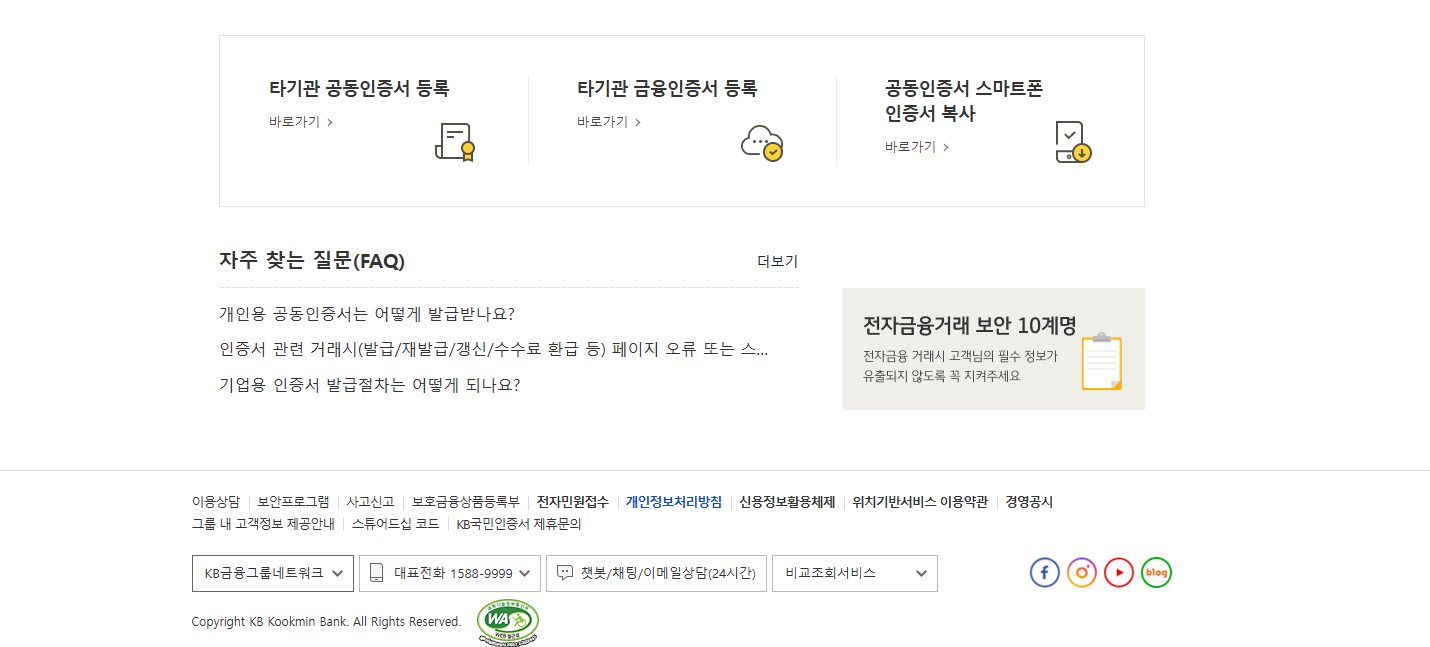 이 모든 과정을 한눈에 해결해주는 곳, 바로 국민은행 공인인증센터 홈페이지입니다.