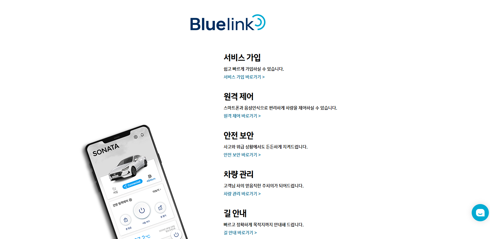 현대 블루링크 홈페이지는 차량과 사용자를 연결하는 핵심 플랫폼입니다.