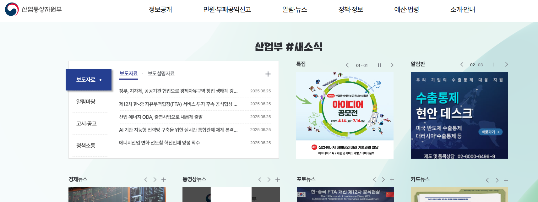 산업통상자원부 홈페이지, 경제·산업 정보의 중심