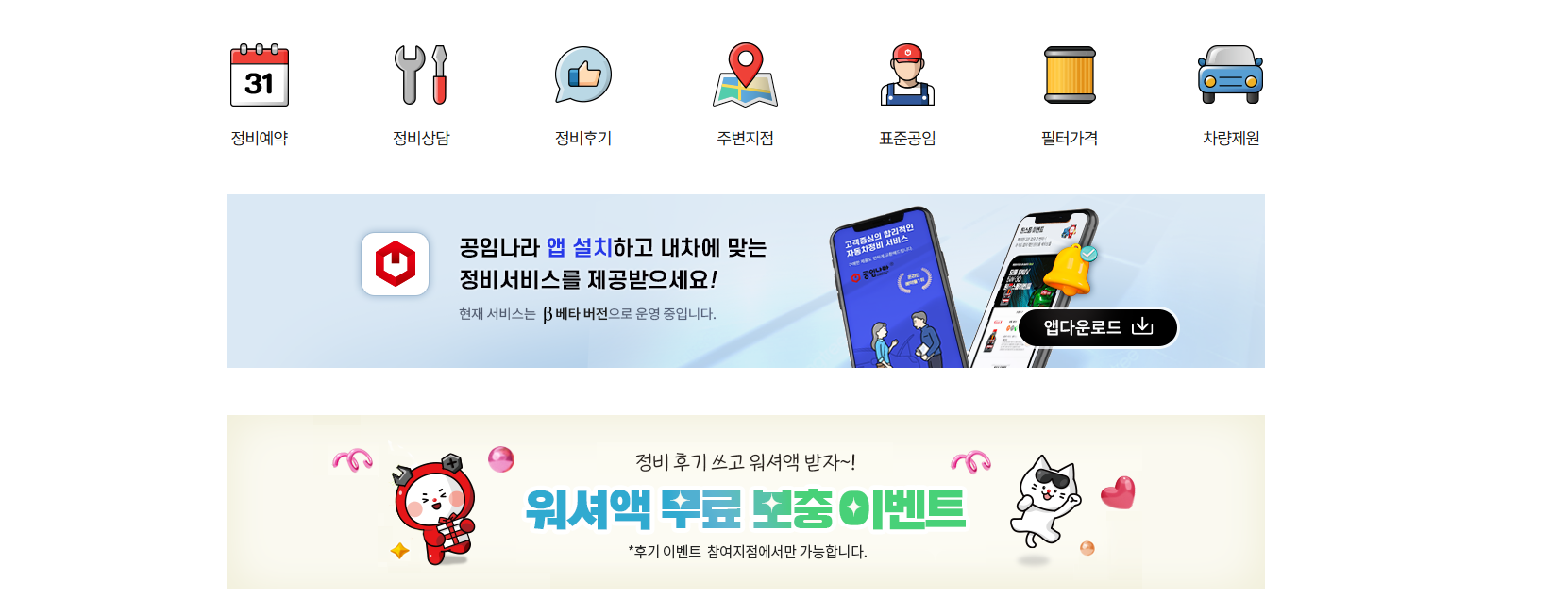- 시즌별 프로모션 진행 (예: 엔진오일 공임 50% 할인)