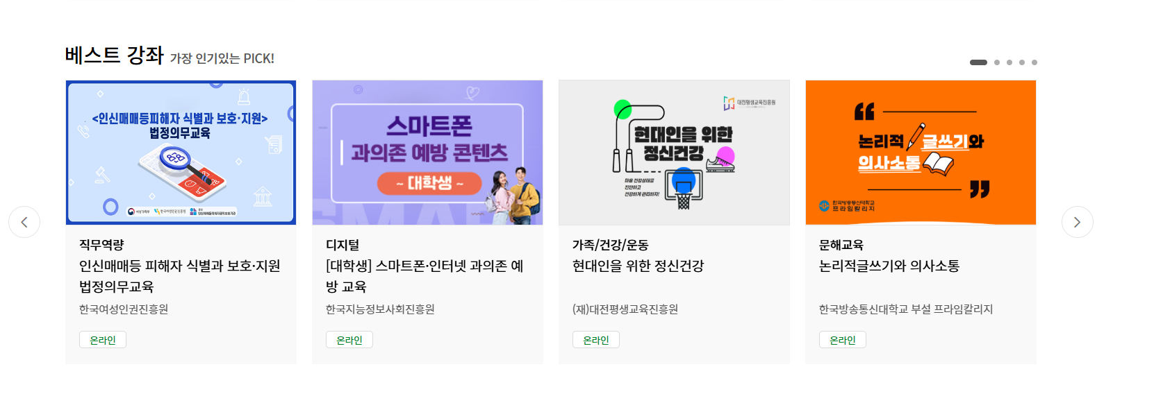 - 자율강좌, 평가인정강좌, 마이크로러닝 등 수업 형태도 다양