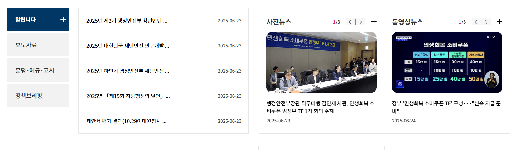 - 국민 안전을 위한 다양한 캠페인 및 긴급 공지사항도 포함