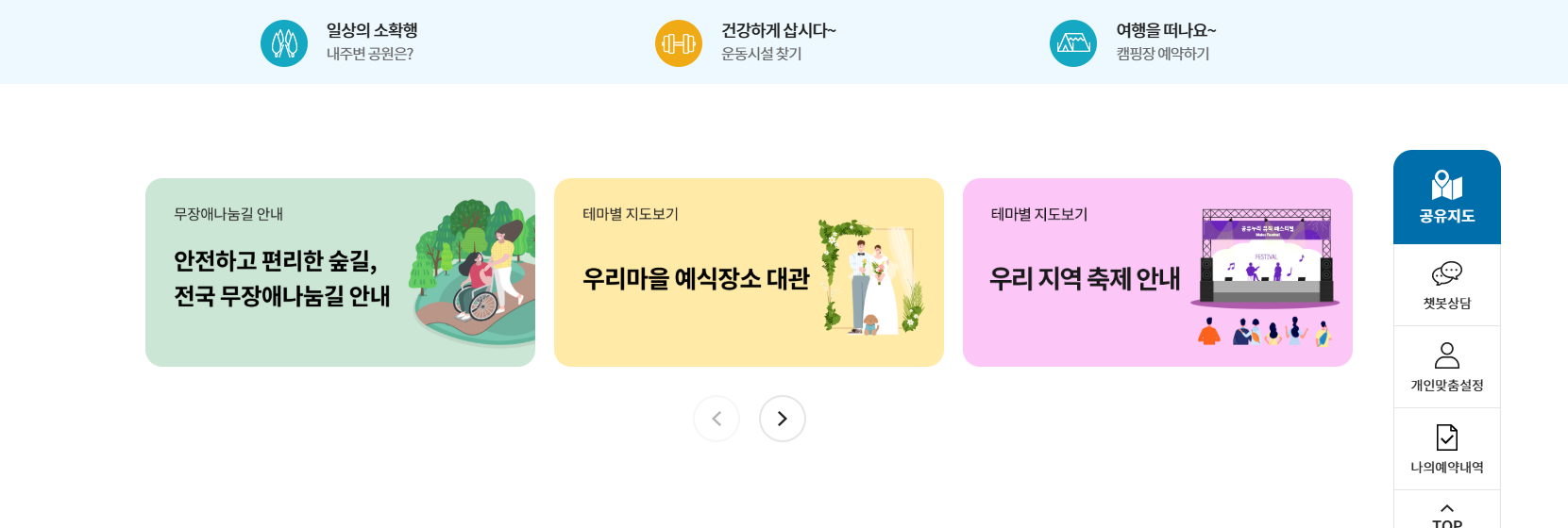 - 중앙행정기관, 지방자치단체 및 공공기관에서 제공하는 자원을 (통합)검색 → 지도 → 예약하는 기능을 하나의 플랫폼에서 제공합니다.