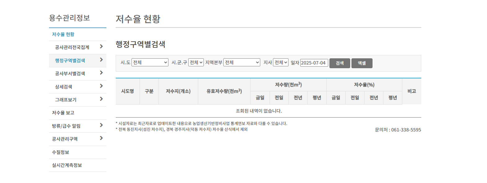 - 전국의 저수지, 하천, 용수 정보를 통합 관리합니다.