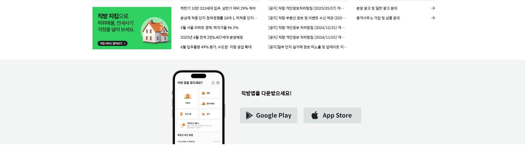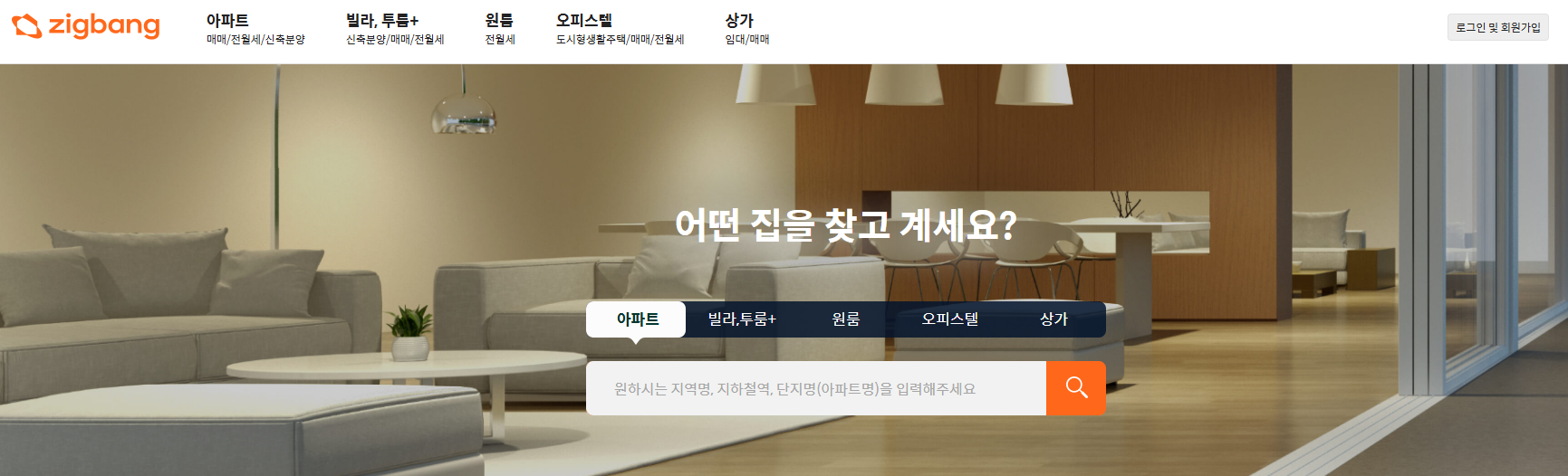 직방은 원룸, 투룸, 오피스텔, 빌라, 아파트, 분양 매물까지 모두 다루는 대표적인 부동산 플랫폼입니다.