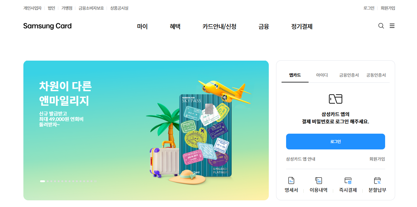 삼성카드 홈페이지는 단순한 카드 안내 사이트가 아닙니다.